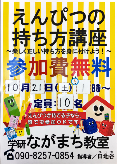 10月に各教室で「えんぴつの持ち方講座」を行います。
