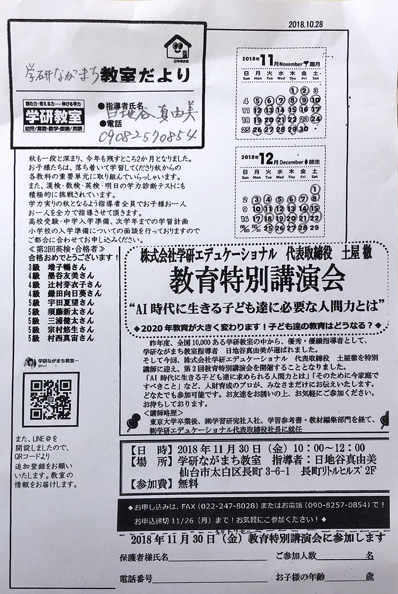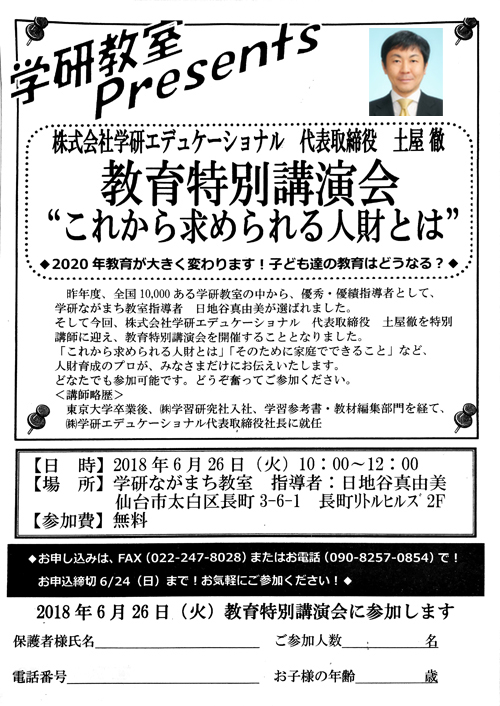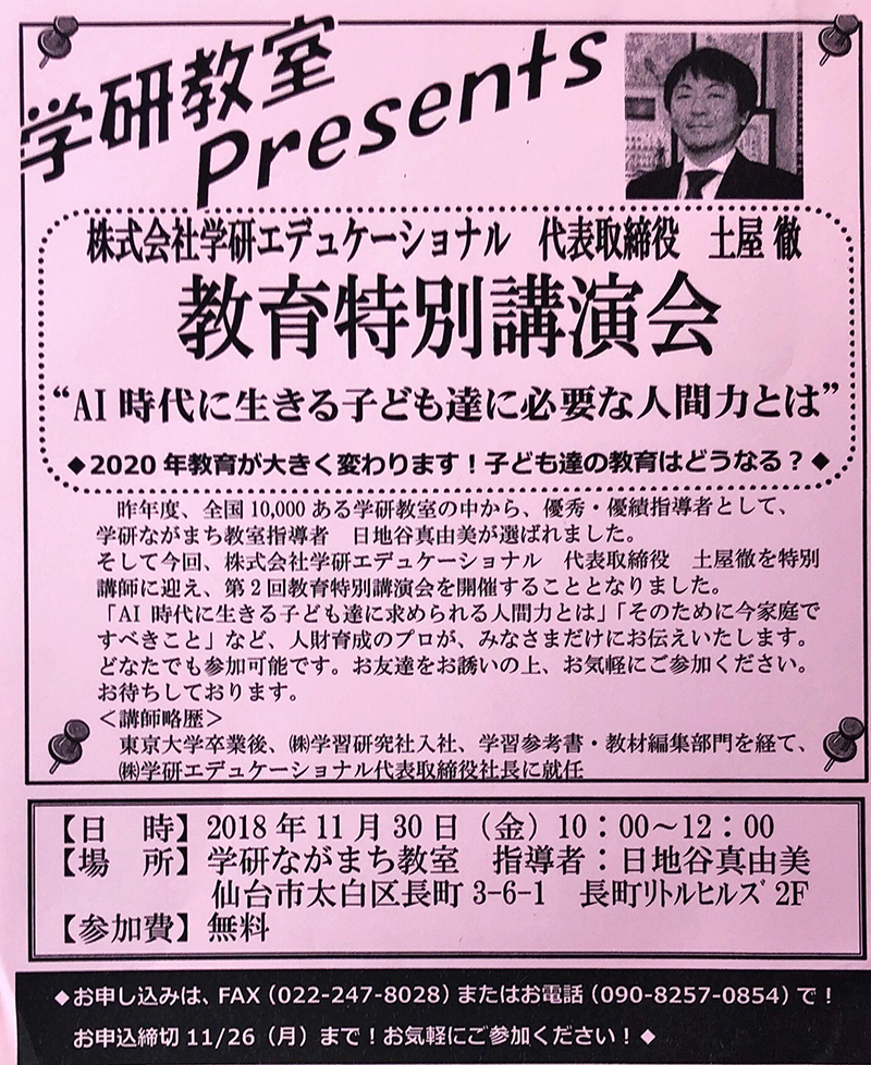 だから私は、日地谷先生に感謝したいと思います。そして、学研教室に通ってよかったです。