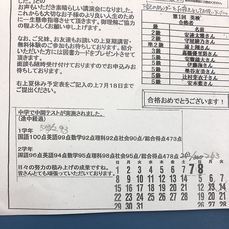 小学二年生の時から当教室に通塾されています。毎日の学習の積み上げの成果ですね。