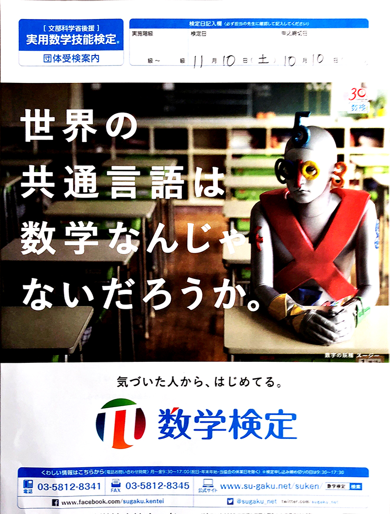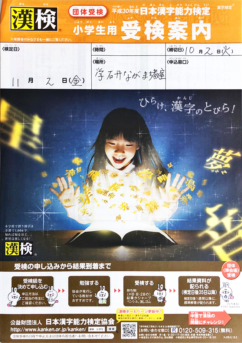 検定はながまち教室で実施しています。ご相談等あればご連絡ください。
