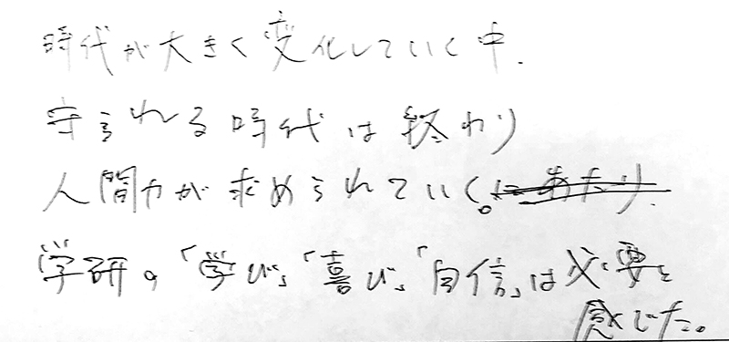 学研教室で学んだ事がきっかけとなり、人生が変わったと保護者様に言われました。