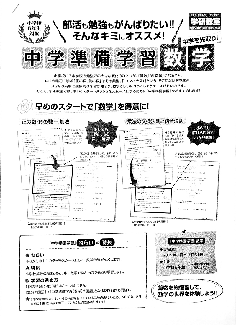 発展教材は、普通の教材より難しい内容でしたが、たくさんのプリントを解き難しい問題にもなれることができました。この他にも、理科・社会・読書・活用コース・中学校1年生の教材など、たくさんの教材に取り組みました。また、中学生と一緒に授業を聞きました。そして取り組んだこと全てが役に立ちました。