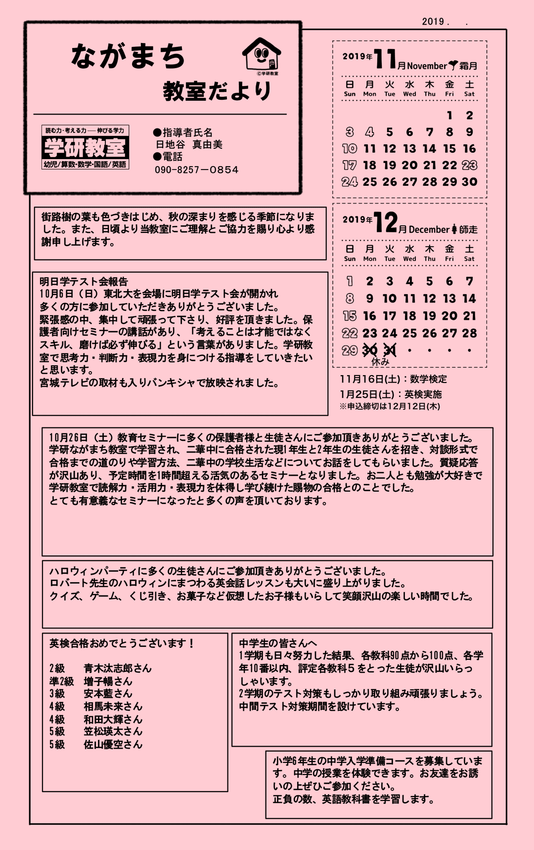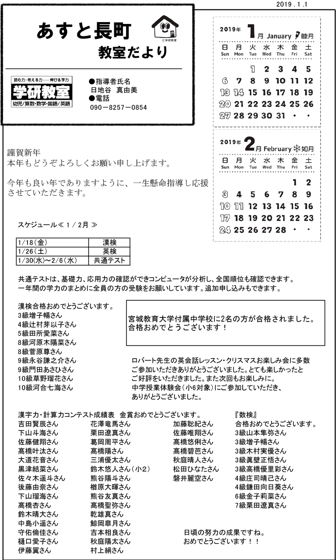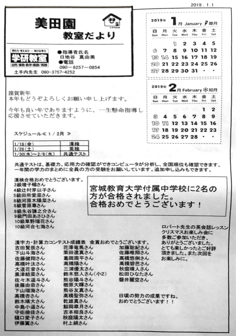 また明日の学力テストで5年生M Yさんは9位(3896名中)で表彰を受けました。素晴らしい成績です。 お二人ともながまち教室で低学年から通塾して学研教材で算国英語理社読書作文コースで中学1年教材まで解ききっています。明日の学力テストはこれからの教育改革で身に付けたい求める思考力活用力表現力読解力の問題です。日々の学習の成果です。本当におめでとうございます。これからも益々楽しみです。