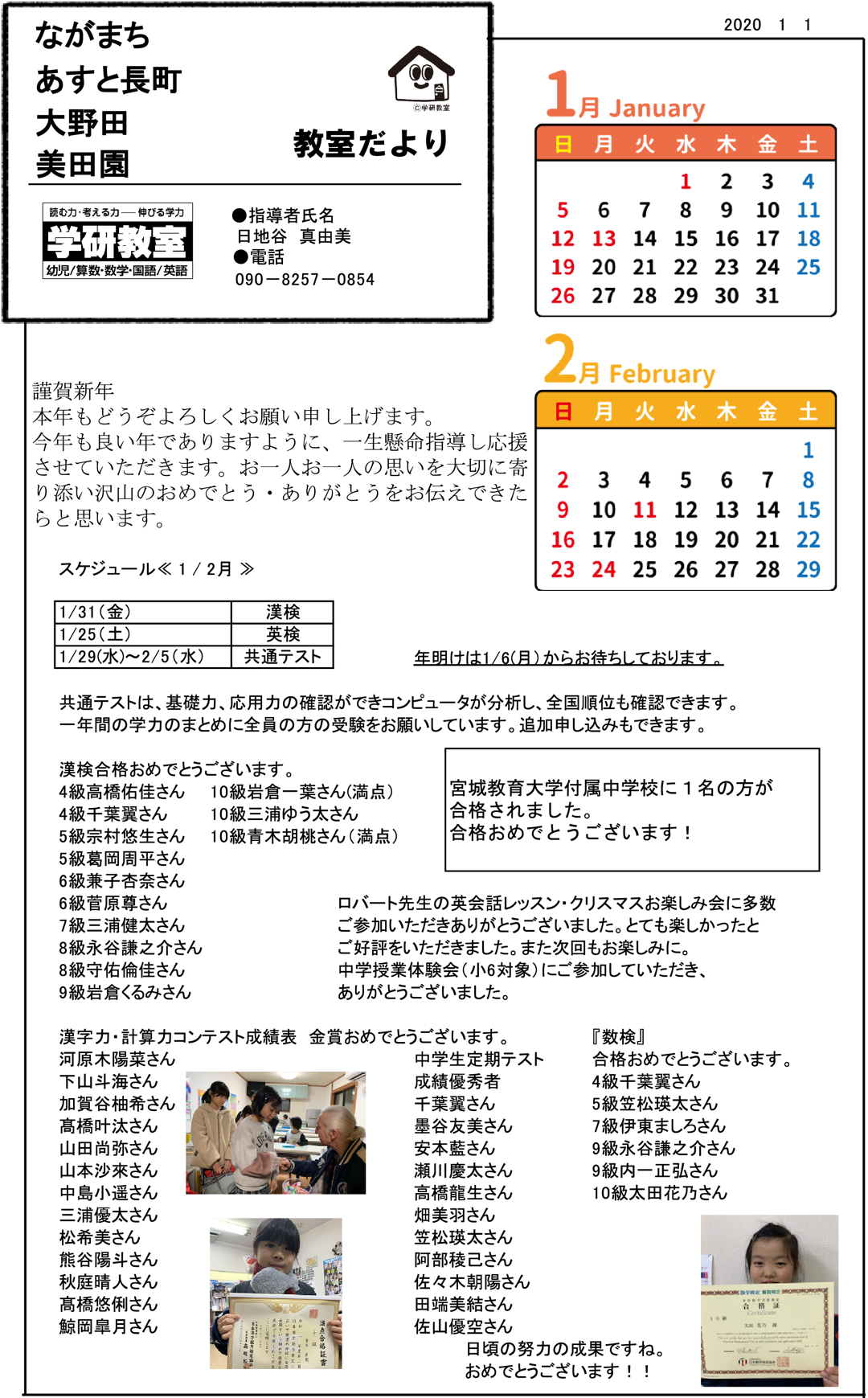 各学年の成績優秀者の方々をお知らせします。