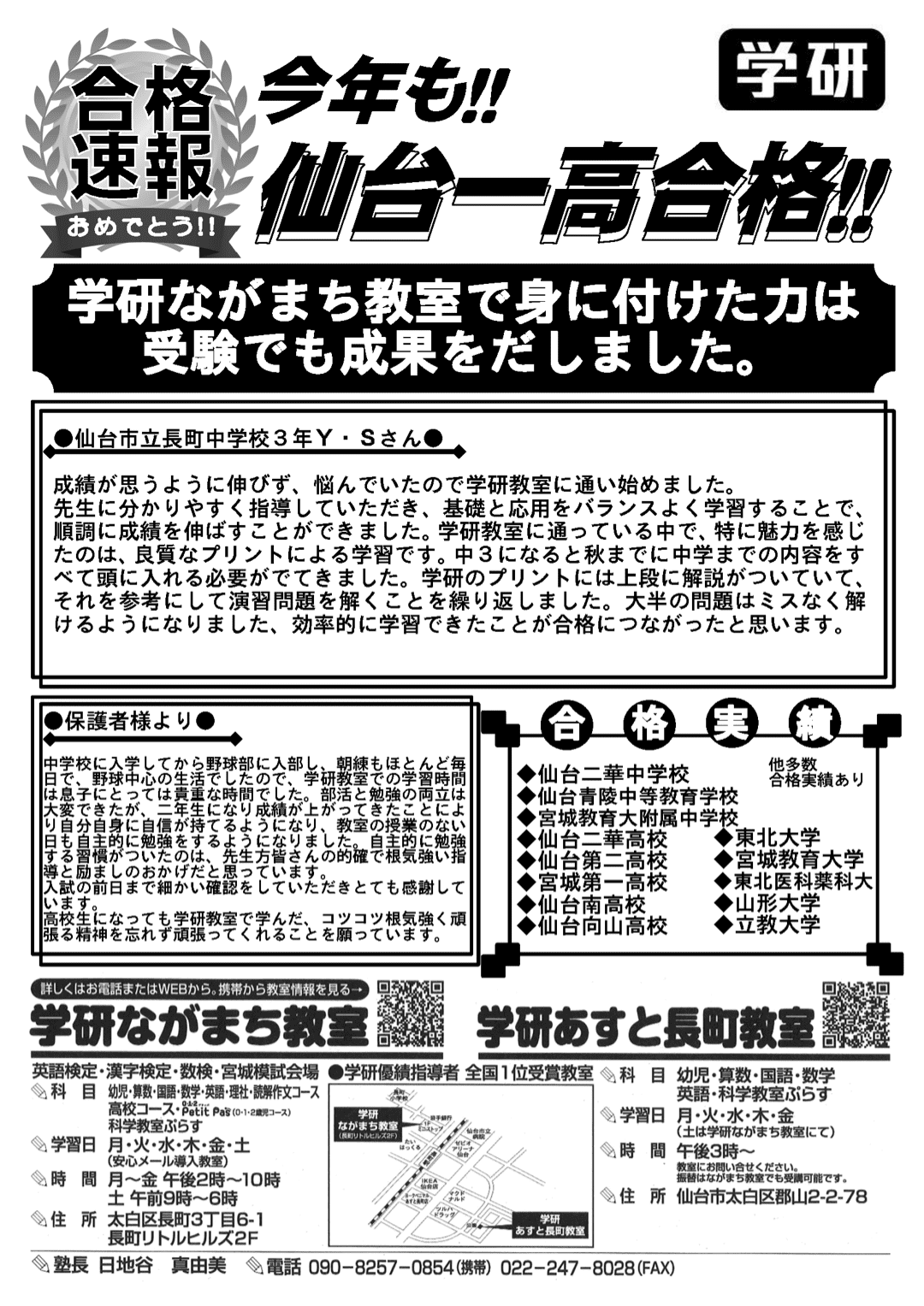 新みやぎ模試1・2年「第一回」、3年「第二回」の結果が返却されました。皆さんとても頑張ってくださいました。