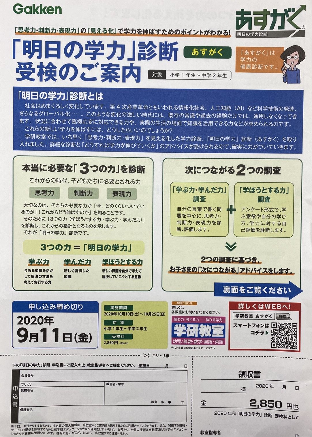 16日以降、お子様を通じてお渡しいたしますのでご記入の上、次回ご来室時にお持ちください。