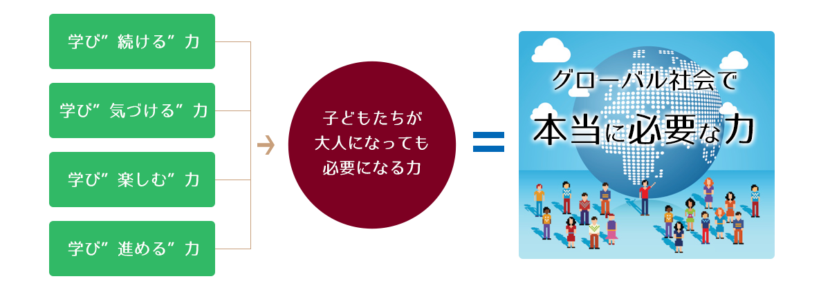 お子さまと指導者が同じ目線で一人一人の学力に応じた最適な教材を与え、適切なアドバイスをすることで、「自分からすすんで学習する」態度や能力を育てます。