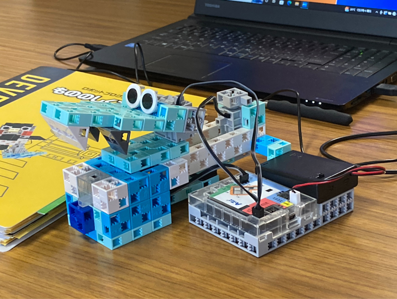身近なものを動かすための構造や、センサーやモーターを利用するためのプログラミングを学びます。